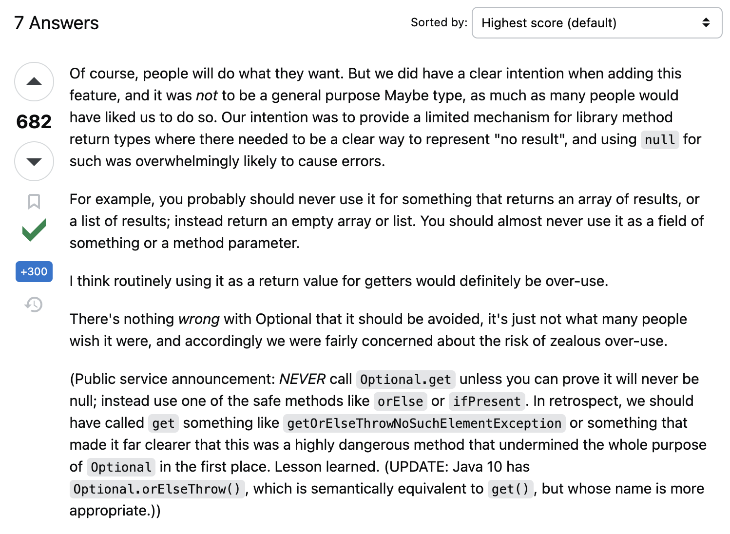 Java Optional 바르게 쓰기Brian Goetz는 스택오버플로우에서 Optional을 만든 의도에 대해 다음과 같이 말했다. … it was not to be a general purpose Maybe type, as much as many people would have liked us to do so. Our intention w