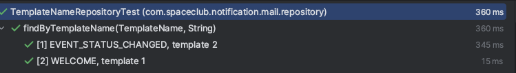 그래서 각 MailHistory는 어떤 template으로 보낼지 template이름을 가지고 있는데, tempate이름이 WELCOME이면 template id가 1, EVENT_STATUS_CHANGED이면 2로 설정된다.