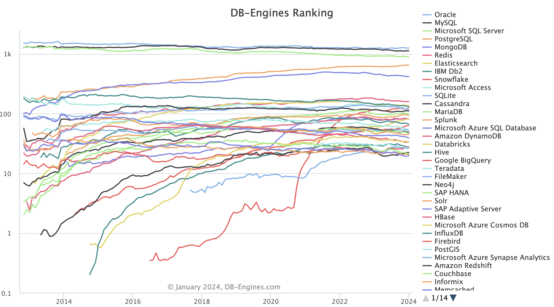 위 두 가지 이유 때문에 관계형 DB를 사용했고, opensource이기에 무료이며, opensource 중에 점유율이 가장 높은 이유로 MySQL RDBMS를 사용했다.