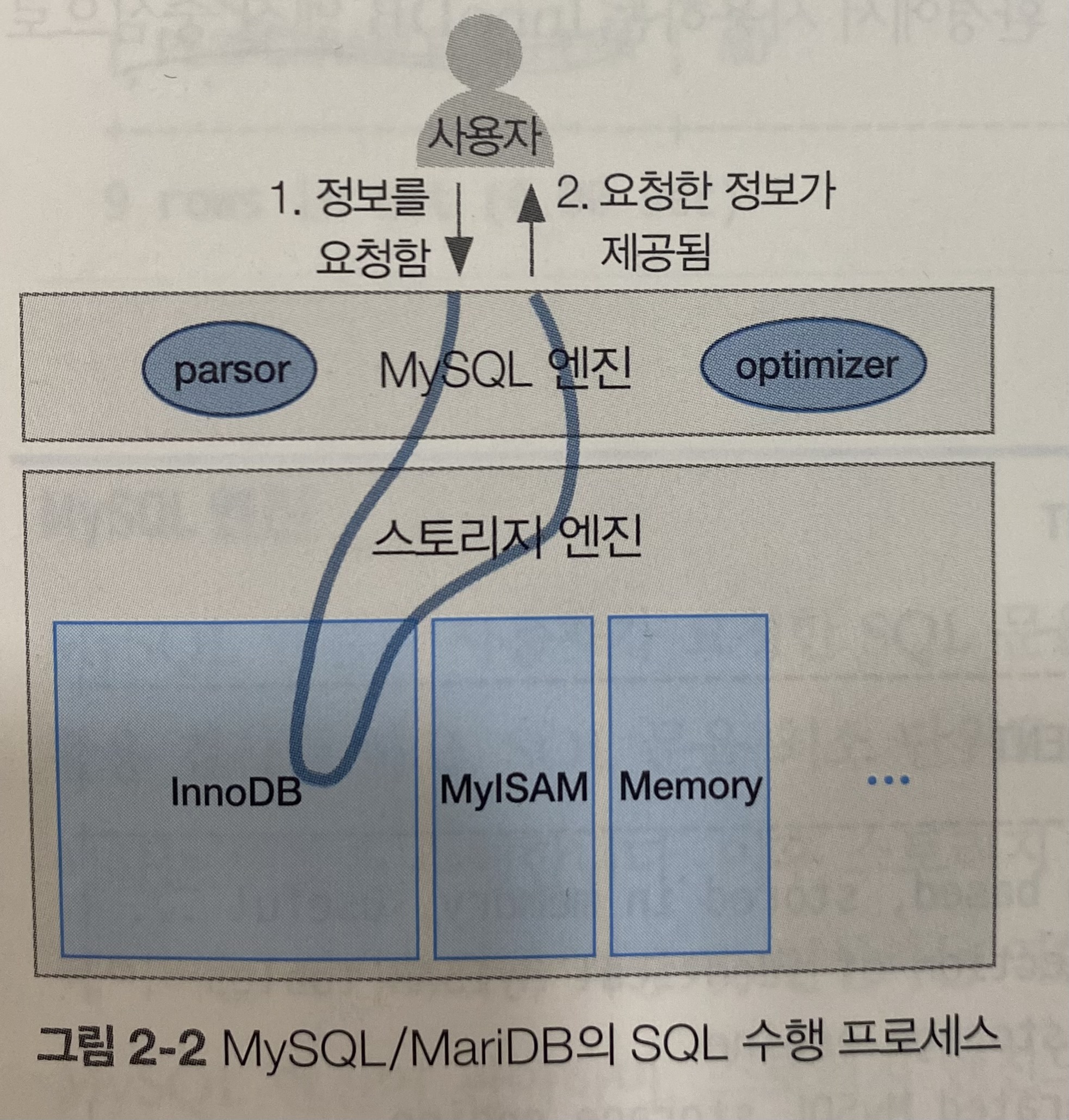 MySQL 엔진은 SQL문 넘겨받아 검사를 진행하고 데이터를 어떻게 빠르게 찾아갈지 경로를 찾는 역할을 수행한다!