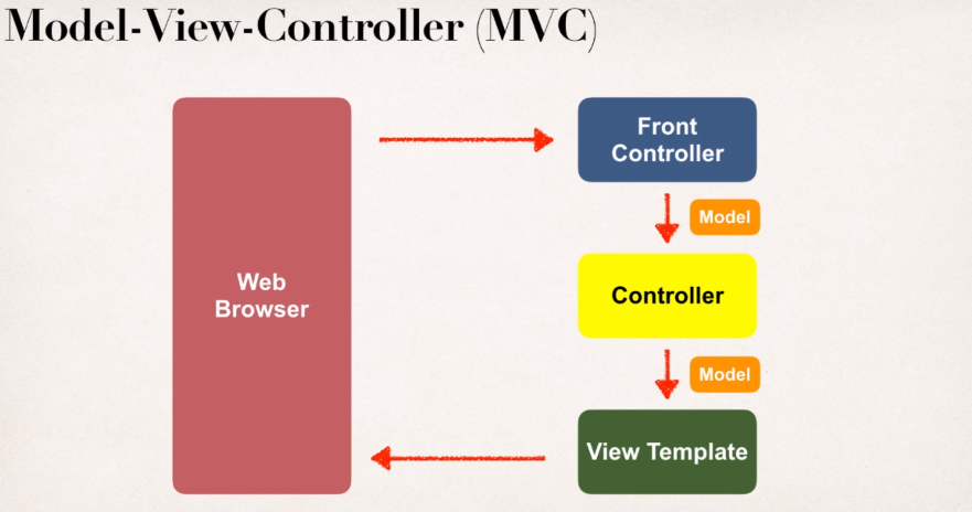 - Front Controller가 하는일 : reqeust를 system안의 다른 object나 item에 위임한다.