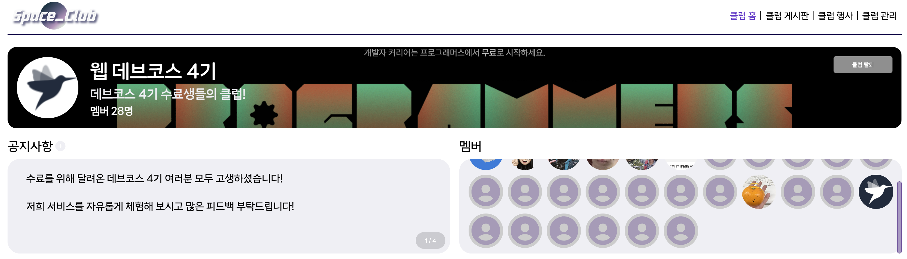 https://spaceclub.vercel.app(지금도 사용가능할 것이다.. 아마?)