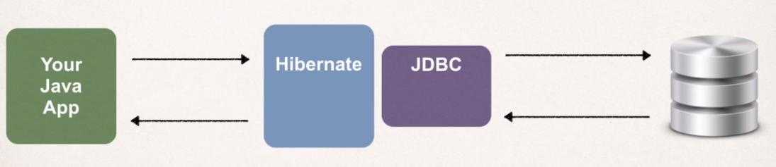 핵심은 mySQL다운하고, 위 코드를 통해서 hbstudent를 만들고, connect j(JDBC driver)를 통해서 연결하고 hibernate를 추가해 Hibernate가 JDBC와 소통해 Java 코드와 database를 매핑해주는 것이다.