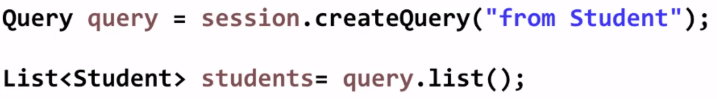 session.createQuery("from Student")로 만들고 해당 쿼리를 query.getResultList()로 가지고 student table로 부터 모든 object의 list를 가지고 와서 Student 객체의 list로 return해준다.