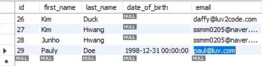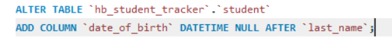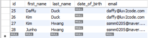 그리고 SELECT를 해보면 다음과 같이 date_of_birth 컬럼이 추가 된 것을 확인 할 수 있다.