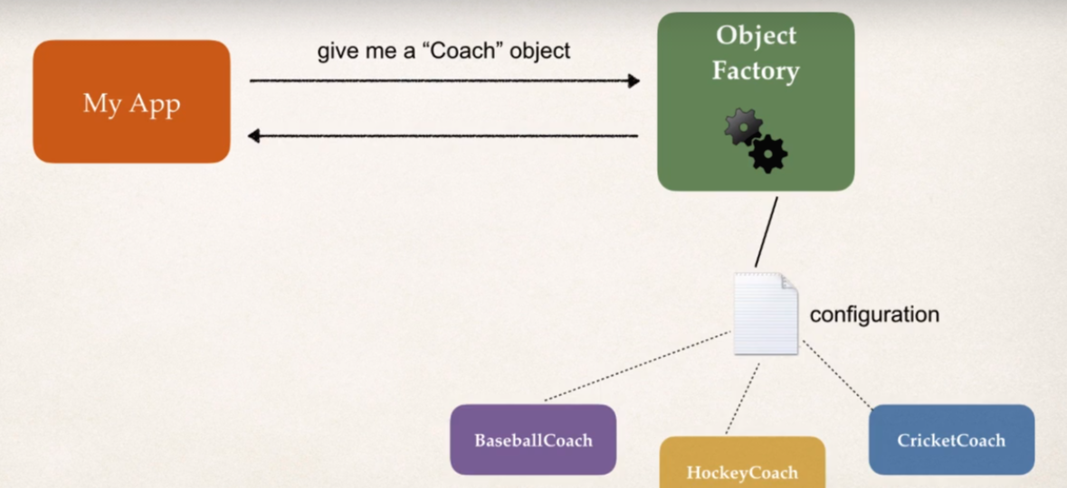 → 2번 문제는 해결했지만 app이 configurable해야한다는 문제가 남았다. 위 코드는 여전히 hard coded된 상태이다. java코드를 변경하지 않고 외부의 configuration file 변경을 통해 쉽게 전환되었으면 좋겠다. 정확히 이문제를 spring으로 해결한다.