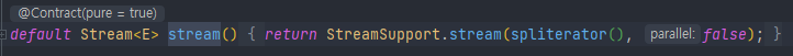 Collection 인터페이스 안에는 stream()이 정의되어 있다. 따라서 List와 Set등을 구현한 컬렉션 클래스들은 모두 이 메소드로 스트림을 생성 할 수 있다.
