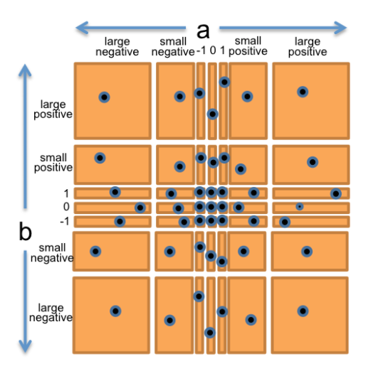 따라서 2차원의 input space가 있기 때문에, a,b를 곱셈이 어떻게 작용하는지를 생각하여 다음과 같이 나눠야 한다.