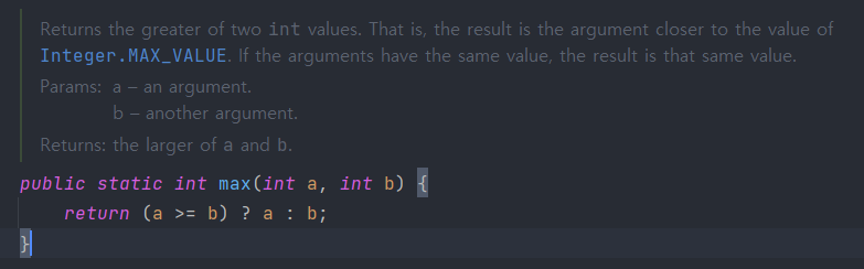 3개 이상 비교시에서는 Math.max(Math.max(int a, int b),intc) ...로 작성할 수 있다.