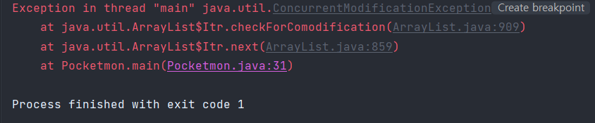 위와 같이 ConcurrentModificationException이라는 Runtime Exception이 발생한다.