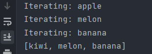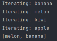 System.out.println("Iterating: " + item);