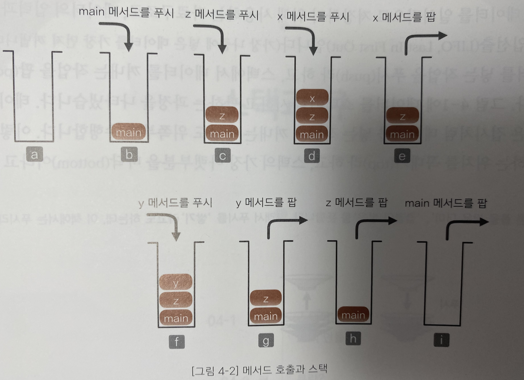 (1) Stack의 예시 : 자바 프로그램에서 메소드를 호출하고 실행하는 프로세스