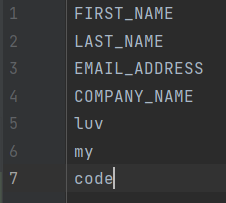 ( FIRST_NAME, LAST_NAME, EMAIL_ADDRESS, COMPANY_NAME)