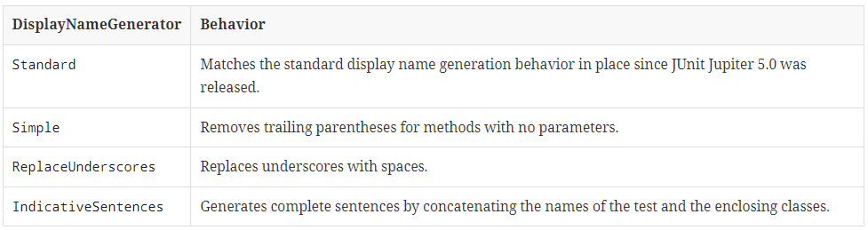 @DisplayNameGeneration(DisplayNameGenerator.IndicativeSentences.class)