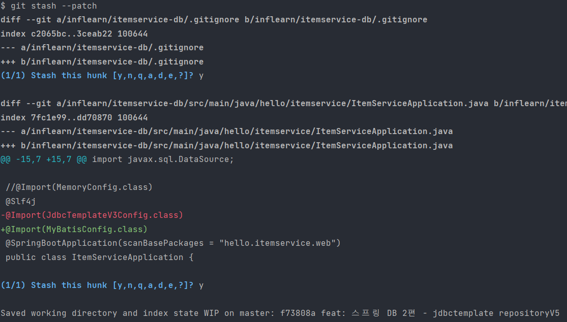 8. git stash --patch를 통한 stash 저장할 것 / 저장하지 않을 것 구분