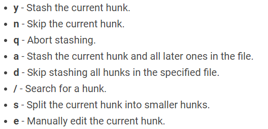 git stash --patch(-p)를 통해서 stash에 저장할 것과 저장하지 않을 것을 구분 할 수 있다.