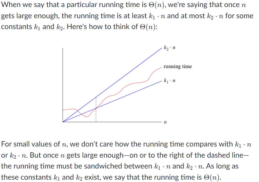running time이 k2n과 k1n 사이에 있을 때, running time을 Θ(1)이라 할 수 있다 (점근적 분석에 따라서 상수 제거)